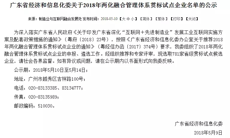 猛狮科技入选广东省两化融合管理体系贯标试点企业