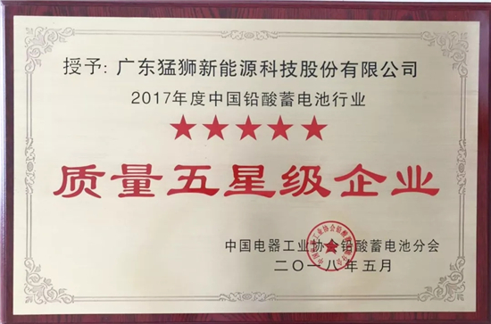 会议对2017年度铅酸蓄电池行业的优秀集体和个人进行表彰。凭借深厚的行业沉淀和突出的市场贡献,猛狮科技被评为2017年度中国铅酸蓄电池行业“知名品牌”、“先进集体”及“质量五星级企业”,陈乐伍董事长荣膺“2017年度中国铅酸蓄电池行业领袖人物”。