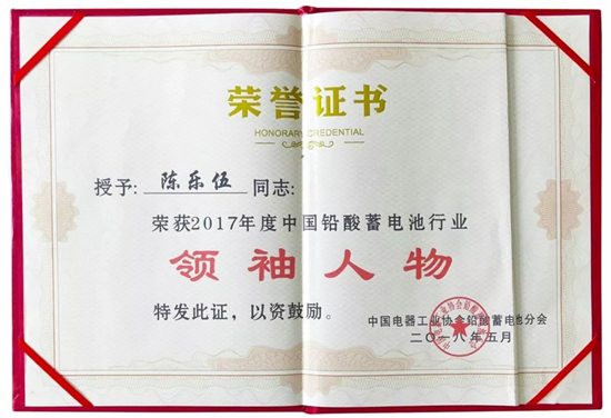 陈乐伍董事长荣膺“2017年度中国铅酸蓄电池行业领袖人物”