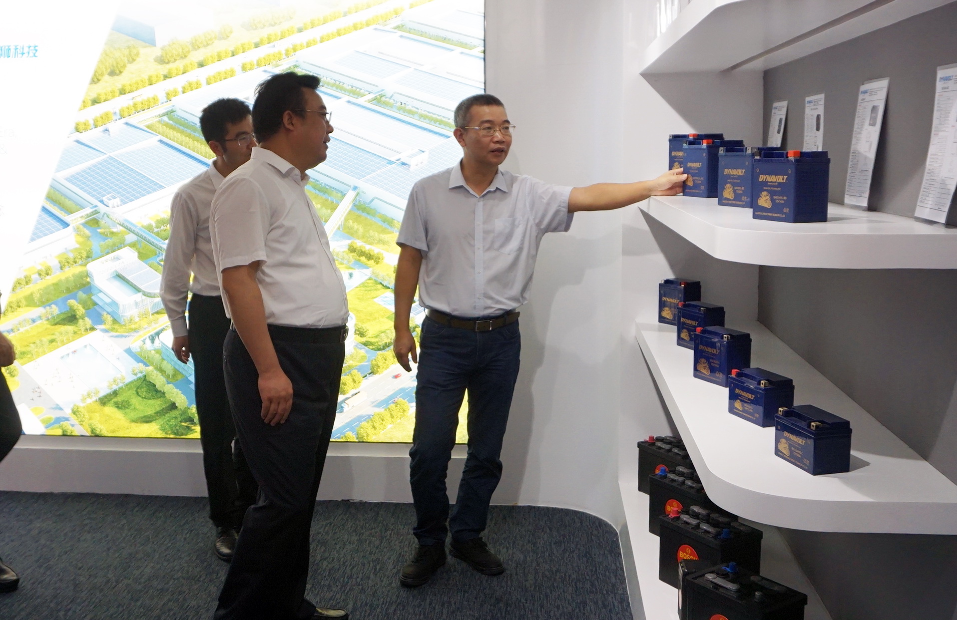 在新能源产品展厅,王少武副总裁向张涛书记一行介绍了公司先进的蓄电池产品以及锂电池在新能源车辆以及储能领域的最新应用,介绍了公司与中建材实施重组混改以及相关合作项目的进展情况。