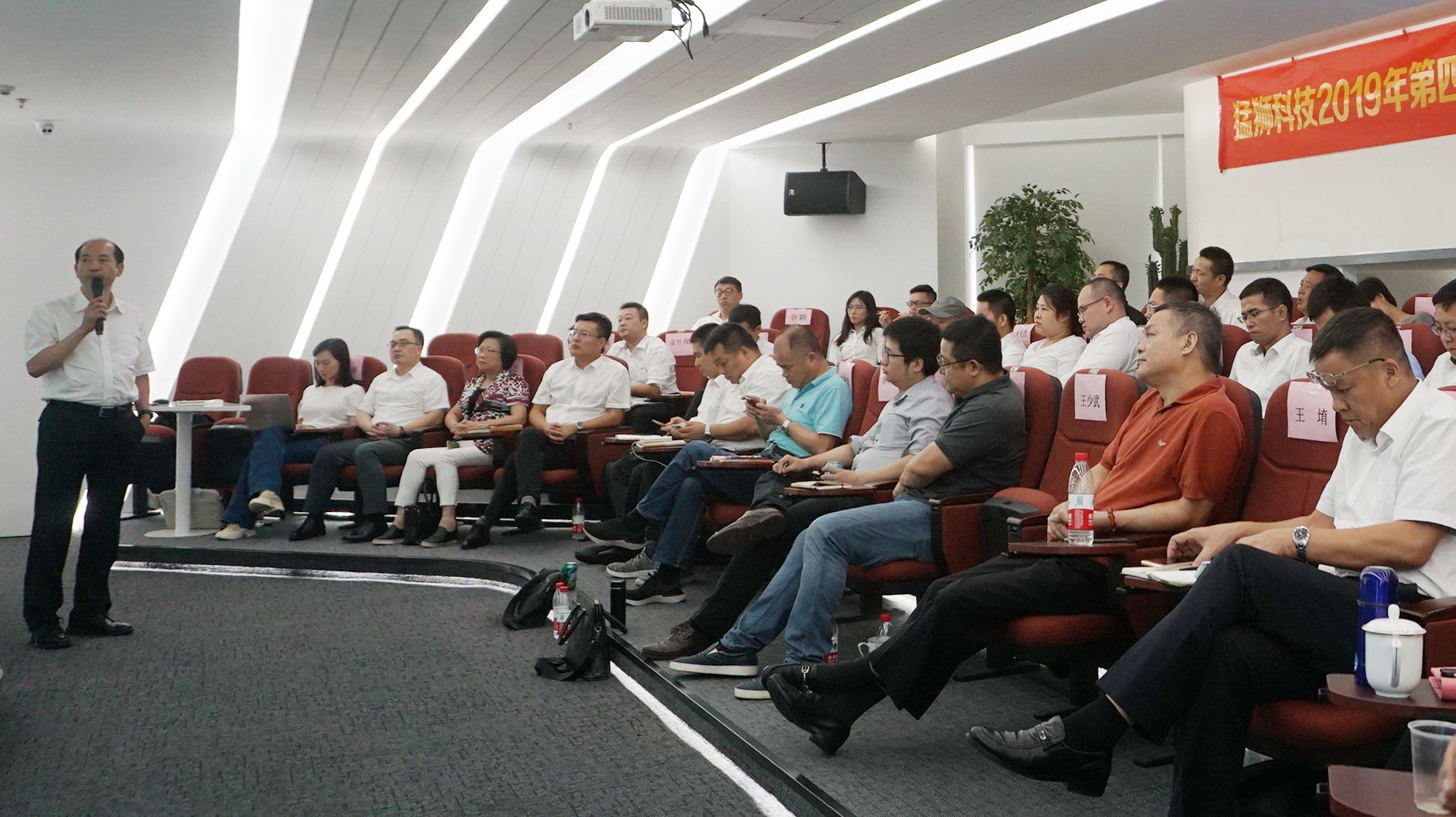 10月15-16日,猛狮科技2019年第四次总裁办公会暨三季度经营工作总结会在深圳召开,陈乐伍董事长、赖其聪副董事长、王少武副总裁、郝身健副总裁、总部中高层管理人员、各子公司总经理及财务负责人出席。