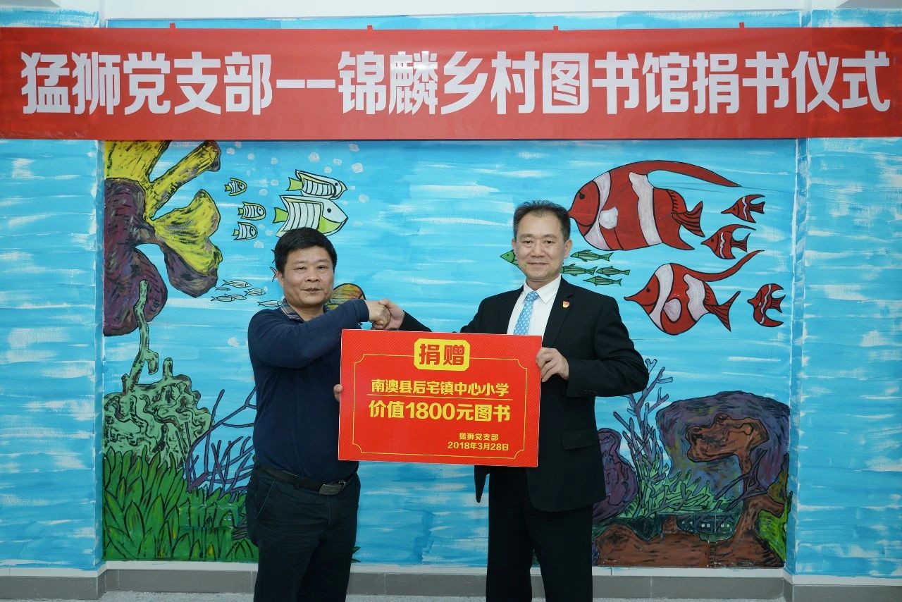 林伯连书记(右)代表猛狮科技捐赠图书