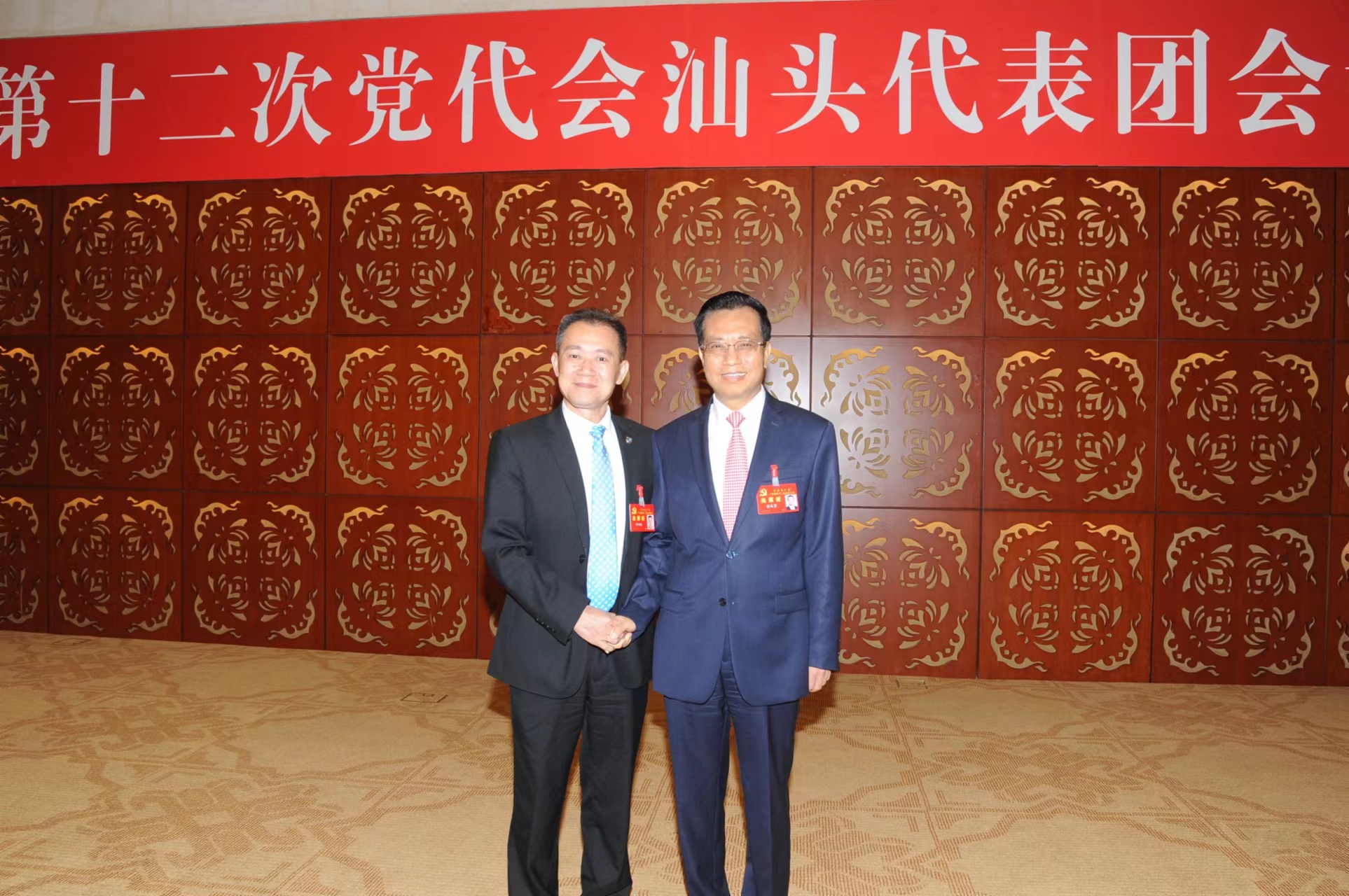 2017年5月,他作为汕头代表团唯一一名来自民营企业界的省党代表,出席参加了共产党广东省第十二次代表大会和广东省第十二次党代会汕头代表团会议,他认真听取省党代会报告,铭记着省党代会精神,始终坚信党建与企业创新发展是相互促进的。汕头代表团会议上,他有机会向社会各界、行业代表递交了“一张猛狮名片”,他畅谈着猛狮三十几年来的发展历程和创新驱动战略,感触极其深刻。