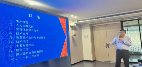 会议上,常务副总裁郝身健重点分析了公司2023年整体经营概况、主要子公司经营概况、费用管控情况、经营性现金流情况和重点经营项目完成情况,并详细解读了2024年公司新的经营方针、经营策略、经营目标。